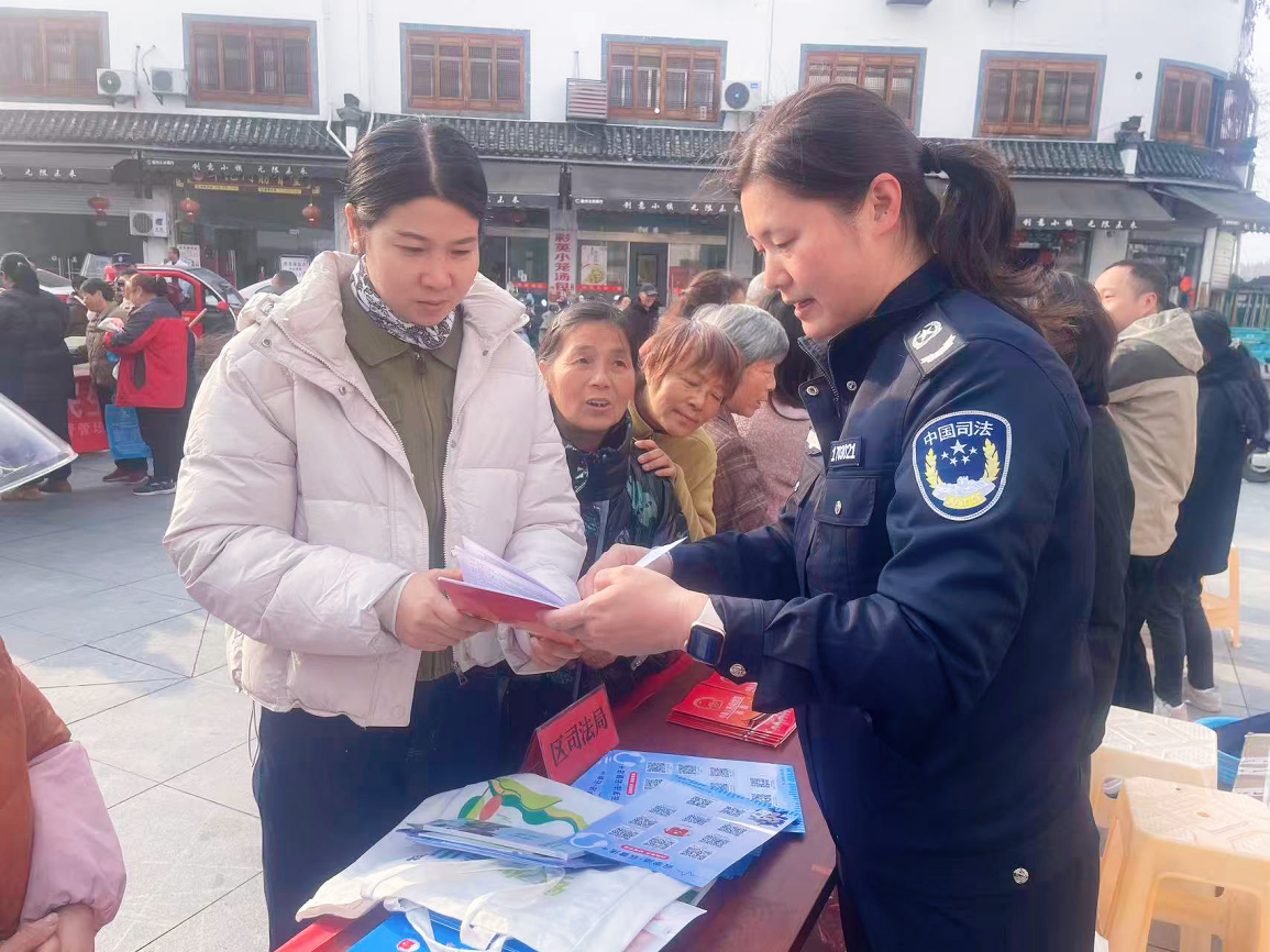 活动由徽州区委依法治区办、区司法局、西溪南镇人民政府联合主办,区委宣传部、区委政法委、区法院等20余家区直单位积极参与,通过设置宣传展板、悬挂法治标语、发放宣传资料、开展现场咨询等多种形式,打造了立体化、互动式的法治宣传矩阵。现场各单位设立的咨询台变身“流动法律服务站”,来自司法、人社、市监等部门的业务骨干和志愿者热情接待群众,耐心倾听各类诉求,围绕婚姻家庭、财产继承、劳动合同、消费维权等与群众日常生活密切相关的法律问题,提供“面对面、一对一”的专业解答与指引。同时,现场还设置了宪法知识有奖问答、法治故事分享等互动环节,吸引众多群众驻足参与,在轻松氛围中学习法律知识、增强法治意识,让普法宣传既有高度、又有温度。