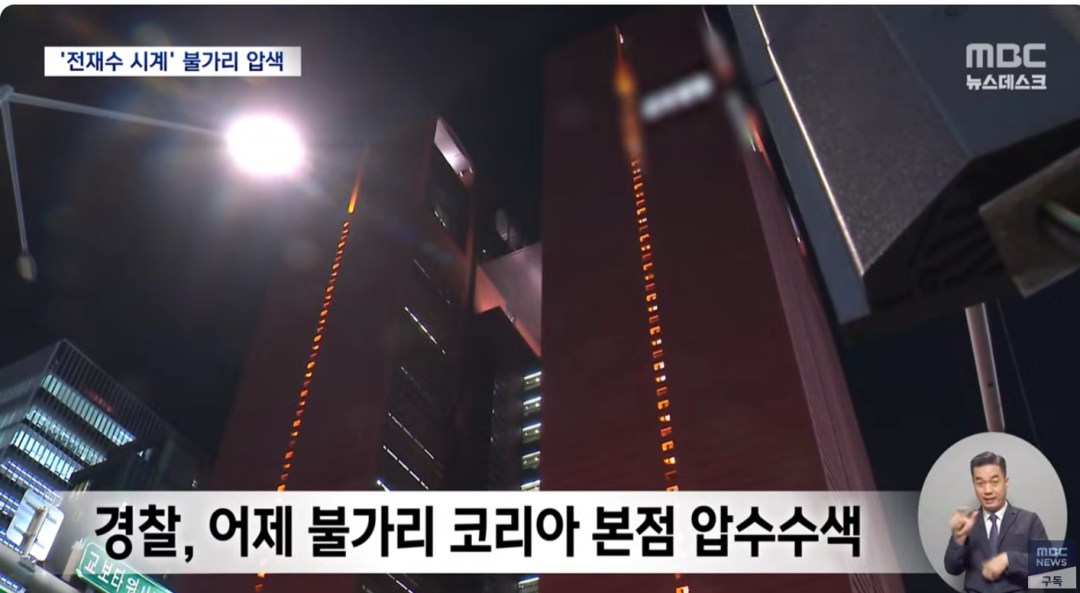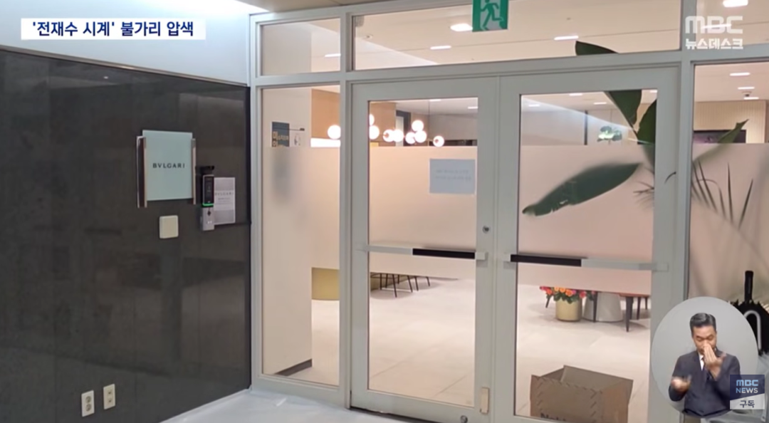 宝格丽韩国总部被突击搜查 图源:韩国MBC电视台报道图