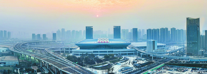 12月30日,晨曦中的合肥西站。记者 方妍 摄