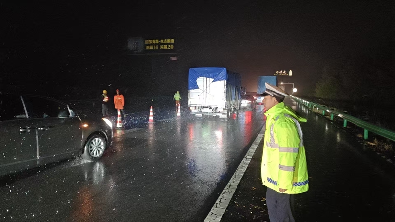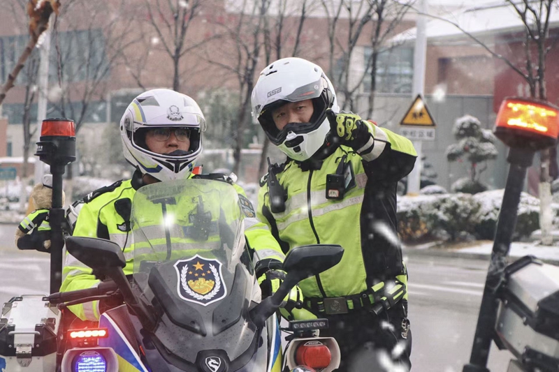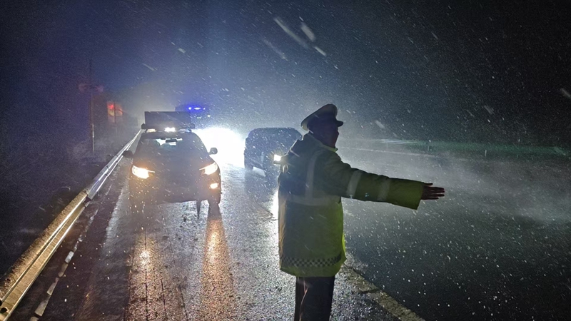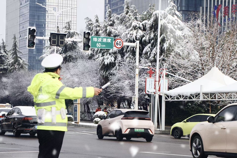 在城区主要路口、高速公路出入口和国省干道,交警们顶风冒雪指挥交通,疏导车辆,及时处理交通事故。他们针对雨雪天气特点,加强巡逻管控,通过警车巡逻、喊话提醒等方式,提醒驾驶员减速慢行、保持车距。