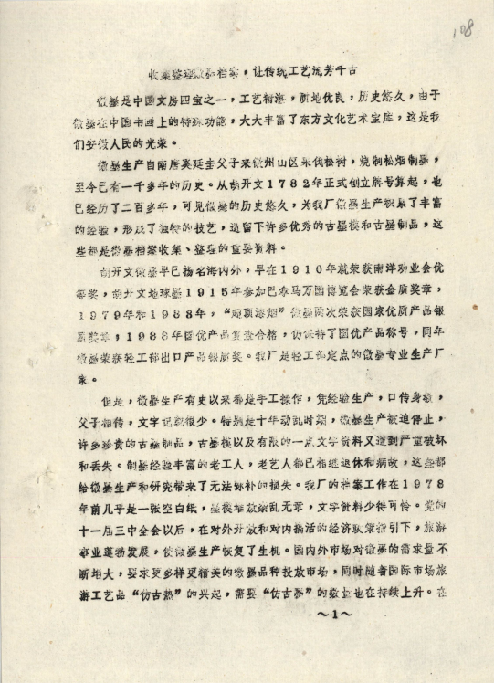 真正让徽墨从工艺珍品升级为商业传奇的,是老胡开文墨厂。安徽省档案馆馆藏《向中共中央及毛主席报告我们徽墨的情况》档案中,留下了这份辉煌的见证:“老胡开文墨厂建设于1782年,徽墨在这个时间不但兴销全国、名闻中外,并曾获得巴拿马万国宝会金奖和南洋劝业会优等奖。”