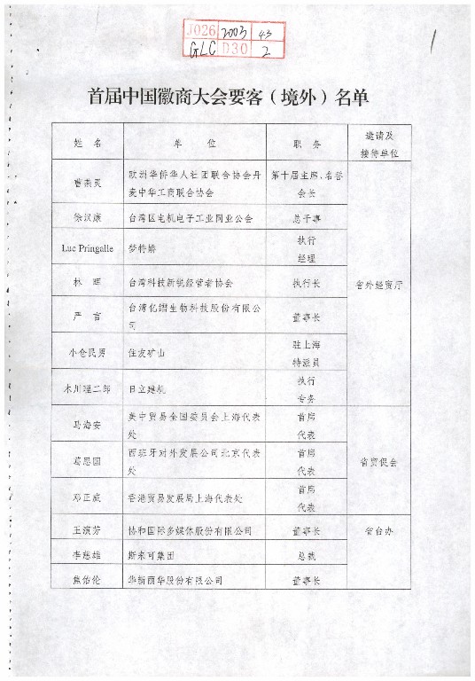 2003年的合肥,一场注定载入安徽商业史册的盛会在此拉开帷幕——首届中国徽商大会。安徽省档案馆馆藏《首届中国徽商大会议程》和《首届中国徽商大会要客(境外)名单》档案中,清晰记录着这场盛会的盛况:首届中国徽商大会于2003年在合肥开幕,大会邀请了包括梦特娇执行经理、日立建机执行专务等来自境外的百名客商和国内外700余名企业代表聚集安徽。这份档案见证着徽商从“单打独斗”到“抱团发展”的转型,也标志着“新徽商”时代的正式到来。