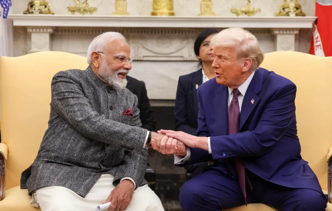 资料图:2025年2月13日,美国总统特朗普(右)在白宫与到访的印度总理莫迪举行会谈。图源:外媒