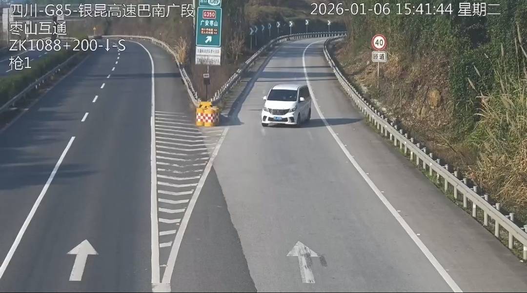 1月6日下午,周某驾驶川X号牌车辆沿G85银昆高速公路重庆往广安方向行驶,途经枣山收费站匝道时,发现自己错过应下的出口。为省去绕行麻烦,周某未按规驶出高速,反而在收费站内广场掉头,随后沿匝道逆行驶入高速主线。过程中,多辆正常行驶的车辆紧急避让,现场险象环生,险些引发事故。