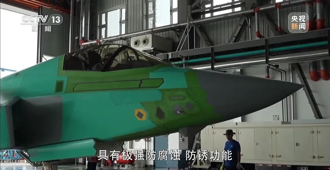 总台央视记者 李宁:随着试飞深入,飞机会逐步进入不同阶段的涂装,绿色的底漆含有铬酸盐,具有极强的防腐蚀、防锈功能,就像装修房子时,在毛坯墙面上刷的“防潮腻子”或底漆,目的是为了打好基础,防止内部损坏。