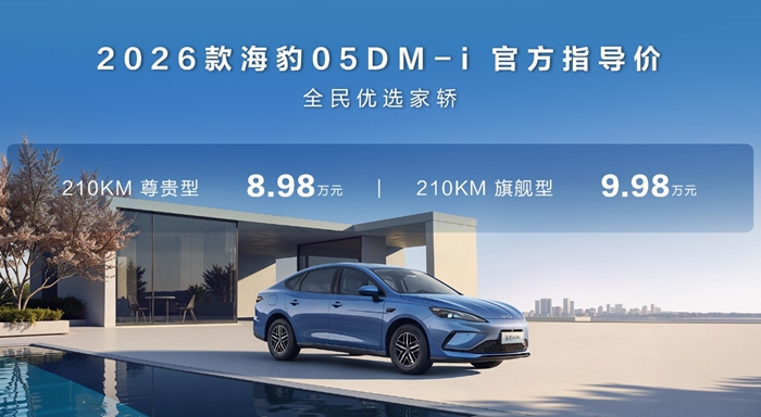1月9日,比亚迪海洋网旗下两款重磅家轿——2026款海豹05DM-i与海豹06DM-i超享版,正式宣布分别加推两款纯电续航高达210km的全新车型。其中,2026款海豹05DM-i加推210KM尊贵型、210KM旗舰型,官方售价8.98-9.98万元;海豹06DM-i超享版加推210KM尊享型、210KM旗舰型,官方售价11.68-12.68万元。