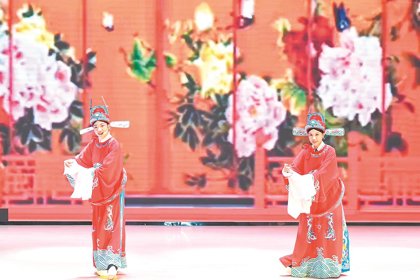 1月12日,合肥市蜀山区在五十中天鹅湖校区(奥体分部)举行“戏剧进基层”文明实践活动暨第三届戏剧“传帮带”汇报展演及“戏曲进校园”巡演,黄梅戏、京剧、庐剧等剧种的经典选段轮番上演,为师生献上一场精彩纷呈的传统文化视听“盛宴”。图为黄梅戏《谁料皇榜中状元》演出现场。