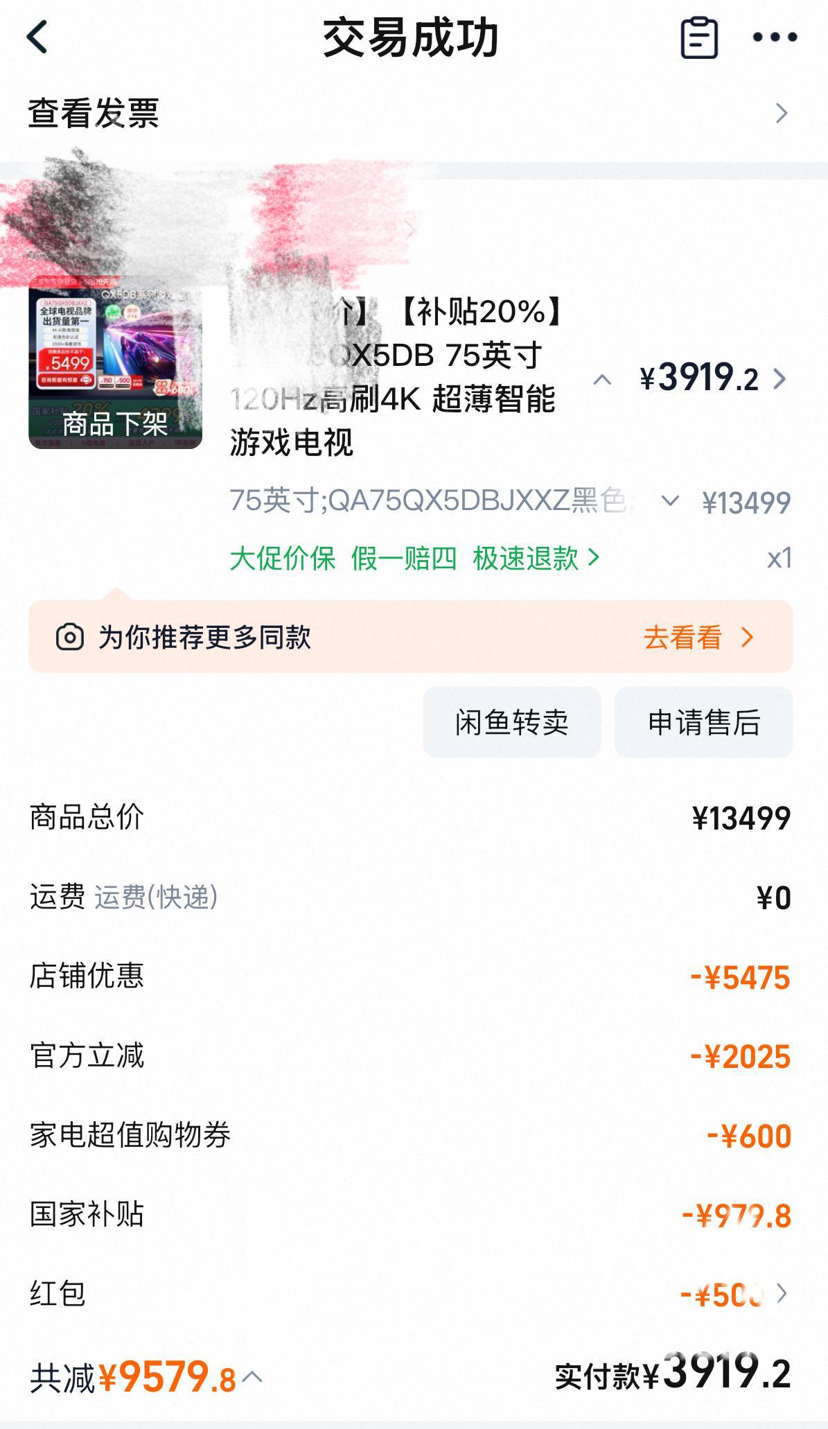去年上半年,他从同事处得知“国补”优惠力度大,想起家里那台尺寸小、分辨率跟不上的电视,便在购物网站搜索。某品牌原本售价约六七千元的4K 120Hz电视,通过国补叠加平台优惠,到手价不到四千元。他果断下单,通过云闪付绑定账号,在支付时享受到了“立减”优惠,为家庭观影体验完成了“大升级”。
