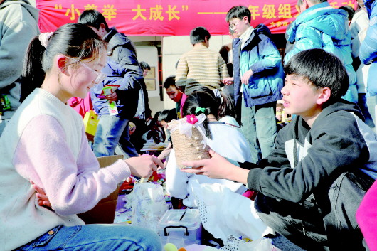 1月13日,金安区人民路小学安丰路校区开展“小善举 大成长”爱心义卖活动,六年级的同学们在校园摆起“跳蚤市场”,将家中闲置的文具、图书、玩具、手工艺品等带到现场进行公益义卖。活动结束后,所得善款将用于帮助家庭困难同学、为社区独居老人送上温暖。这场别样的成长盛宴,让孩子们在感知公益、传递爱心的同时,培养劳动实践技能,提升人际交往能力,厚植社会责任担当。