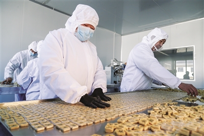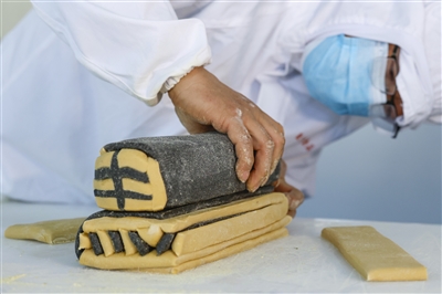 1月13日,祁门县非遗嵌字豆糖制作艺人经过熬糖、磨粉、搅拌、压实、制字、拉伸、切片等手工工序,在方寸糖块之中拼嵌出“馬年大吉”等吉祥字样,为马年新春增添浓浓的传统年味。 施亚磊 方雯/摄