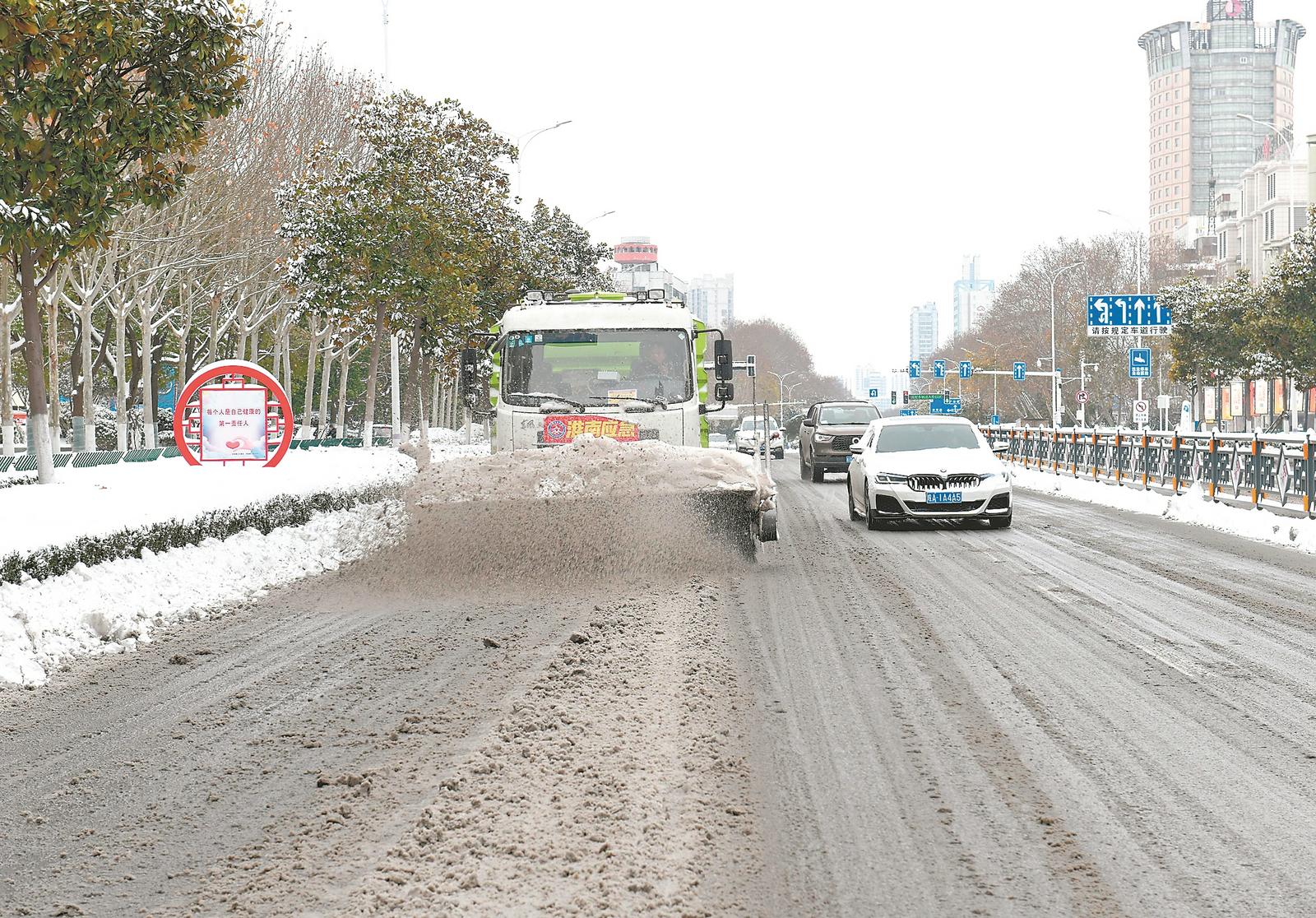 在凤台淮河大桥、二桥及城区主干道上,沿途可见凤台县城管工作人员的身影。城管队员岳成一边驾驶车辆撒布融雪剂,一边指挥工作人员在路面撒盐融雪,人机联动清雪除冰。该部门于20日清晨升级作业,按“先主后次、先急后缓、先险后平”原则,攻坚人员密集路段,机械开道破除清运积雪,人工同步清铲,累计出动人员400余人、各类车辆60余台,撒布融雪剂50余吨,实现融雪防冻全域覆盖。(记者 柏松 通讯员 李巧玲)
