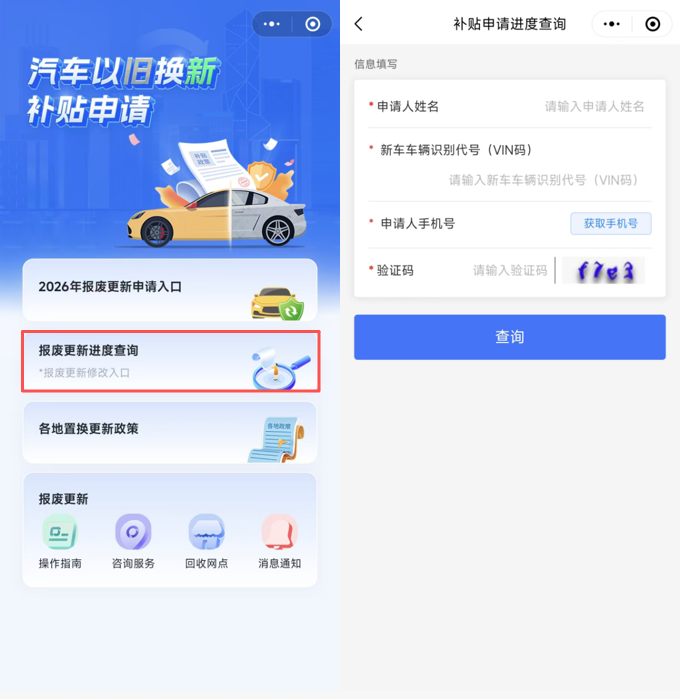 4.申请提交后,可在服务页面选择“报废更新进度查询”服务,输入信息后随时查询进度。