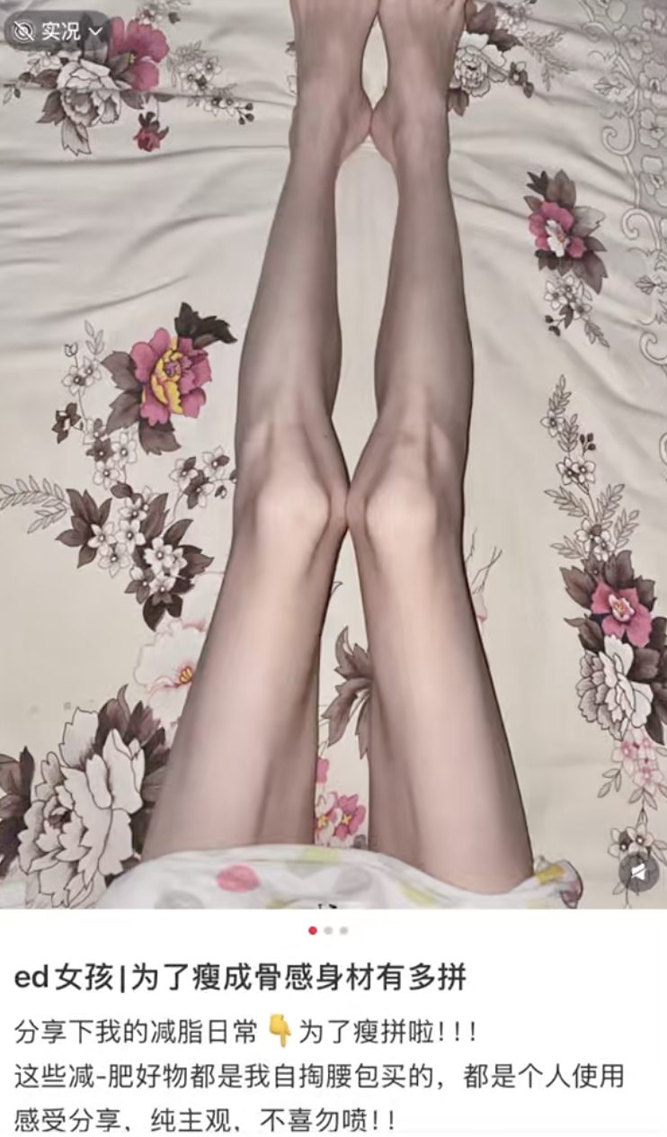 在医学上,“ED”是进食障碍(Eating Disorder)的英文缩写。这类本该接受专业治疗的疾病,在部分网络圈子里,却成了“时髦”的标签,甚至被异化为一种“身份认同”。为了逃避平台监管,他们有一套成年人听不懂的隐晦话语,把催吐称为“生娃”或者用兔子表情符号替代。