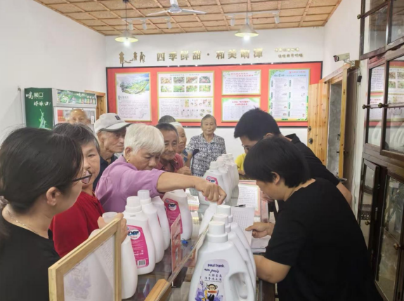 图为响潭村民在和气银行兑换生活用品