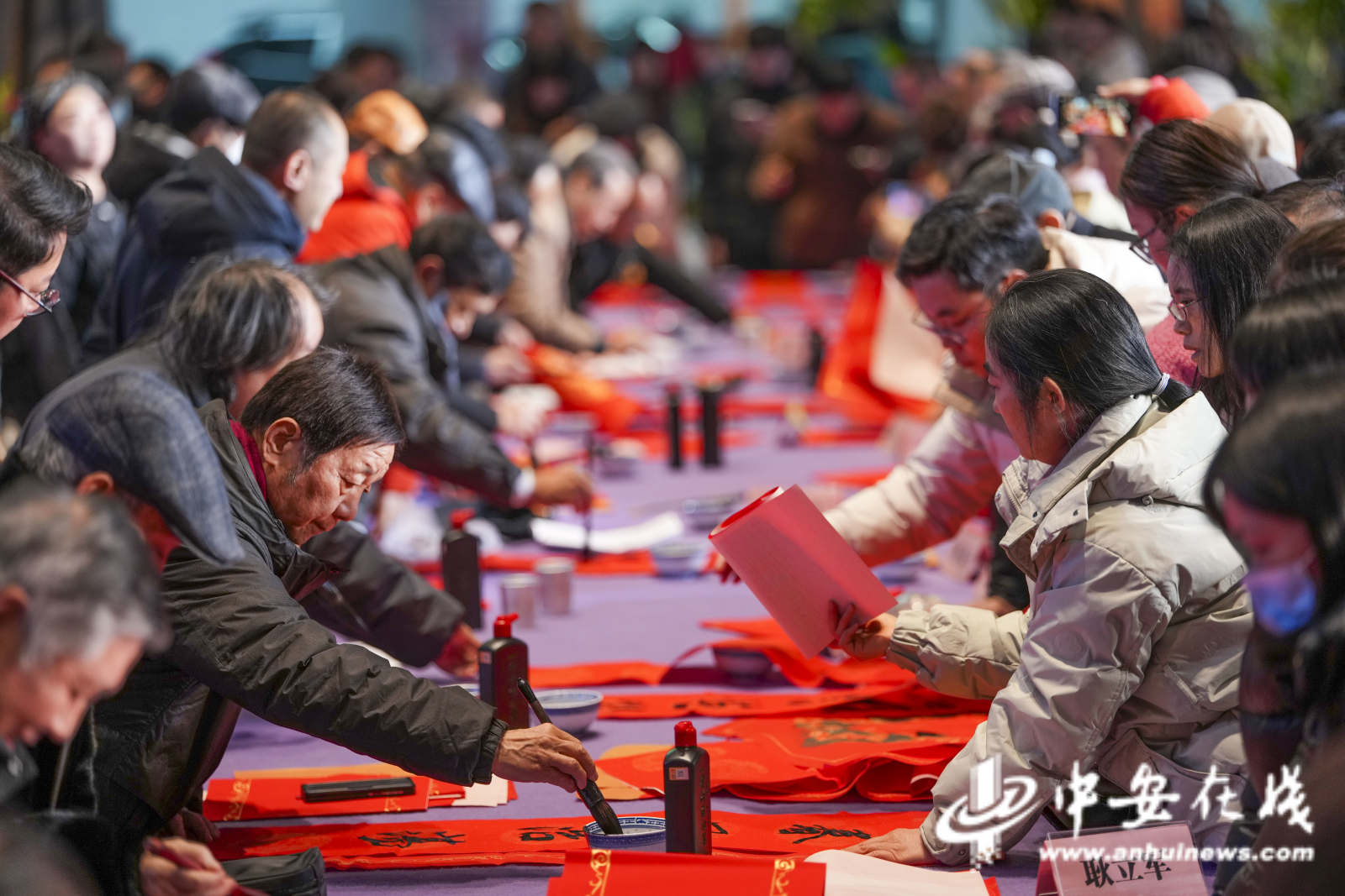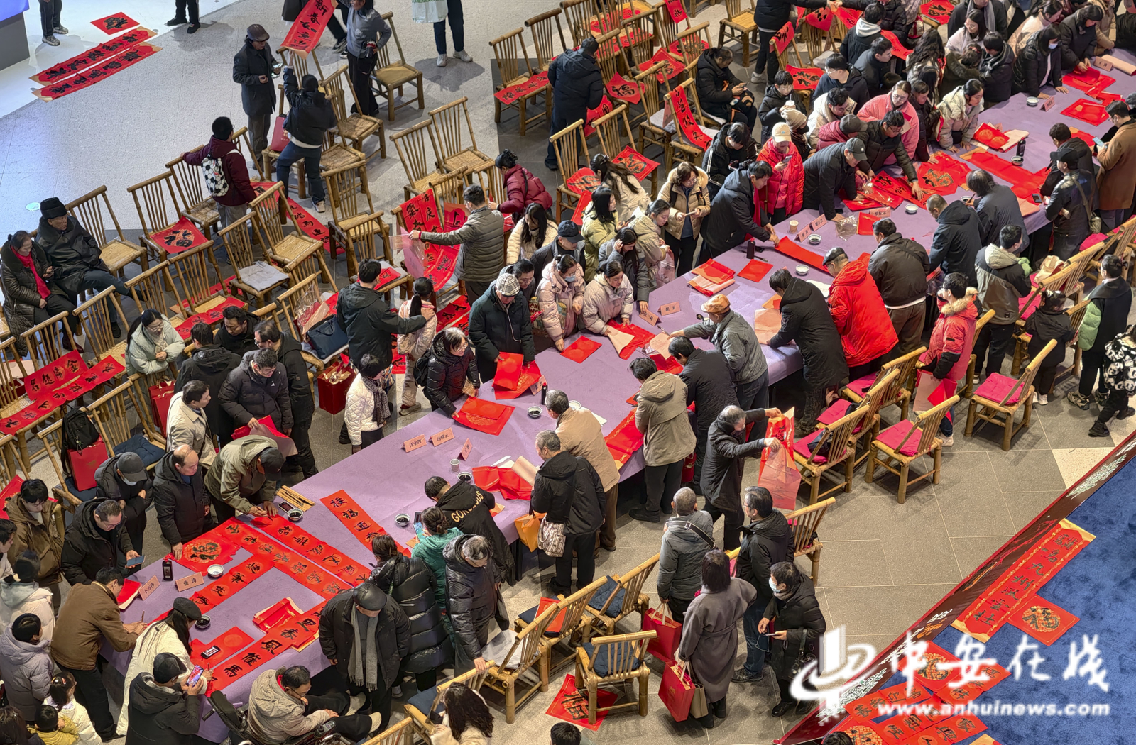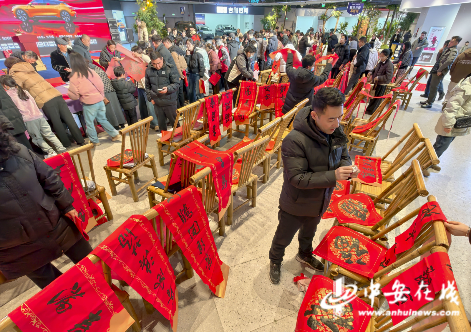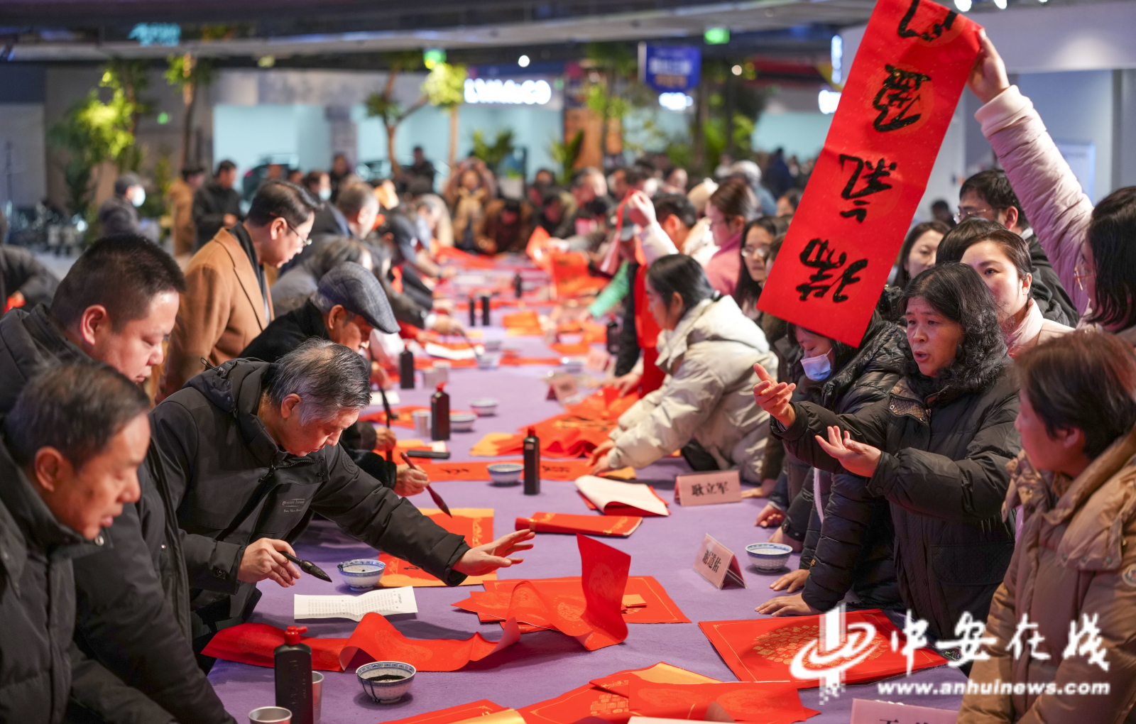 中安在线、中安新闻客户端讯 墨香润民心,春联送福来。1月31日,合肥南站北广场宜车城热闹非凡,合肥市美术家协会在此举办“人民艺术为人民”百位艺术家春联惠民公益行活动,以笔为媒,为即将到来的丙午马年新春送上文化厚礼。