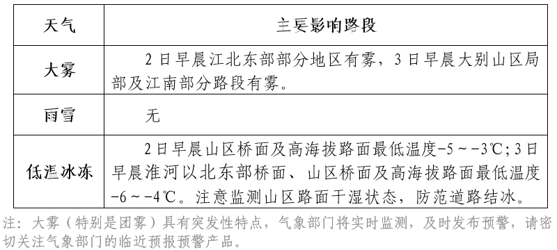 表1 未来三天交通主要影响天气