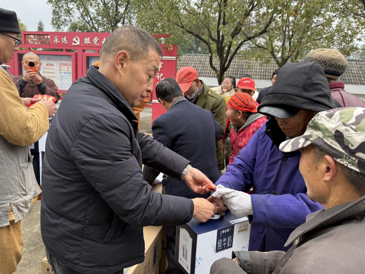 活动现场,敬老院全体老人们与工作人员对明王禅寺住持和法师一行的到来表示热烈欢迎。明王禅寺始终心系长者,每次亲自为老人们送温暖送祝福,话语间满是真挚关怀,让在场每一位老人都感受到佛门大爱与人间温情。随后,慰问活动进入温馨的物资交接环节,住持与敬老院院长共同完成慰问品与慰问金的交接仪式。本次慰问活动明王禅寺共捐赠特仑苏纯牛奶73提,并为每一位院内老人准备了红包。一份份物资承载着沉甸甸的牵挂,传递着长久以来的惦念。交接仪式后,住持和法师们纷纷走到老人身边,与他们握手言谈,叮嘱老人们天气冷了,要注意保暖,多添衣保暖。欢声笑语中,现场温情涌动,气氛爱意暖暖。