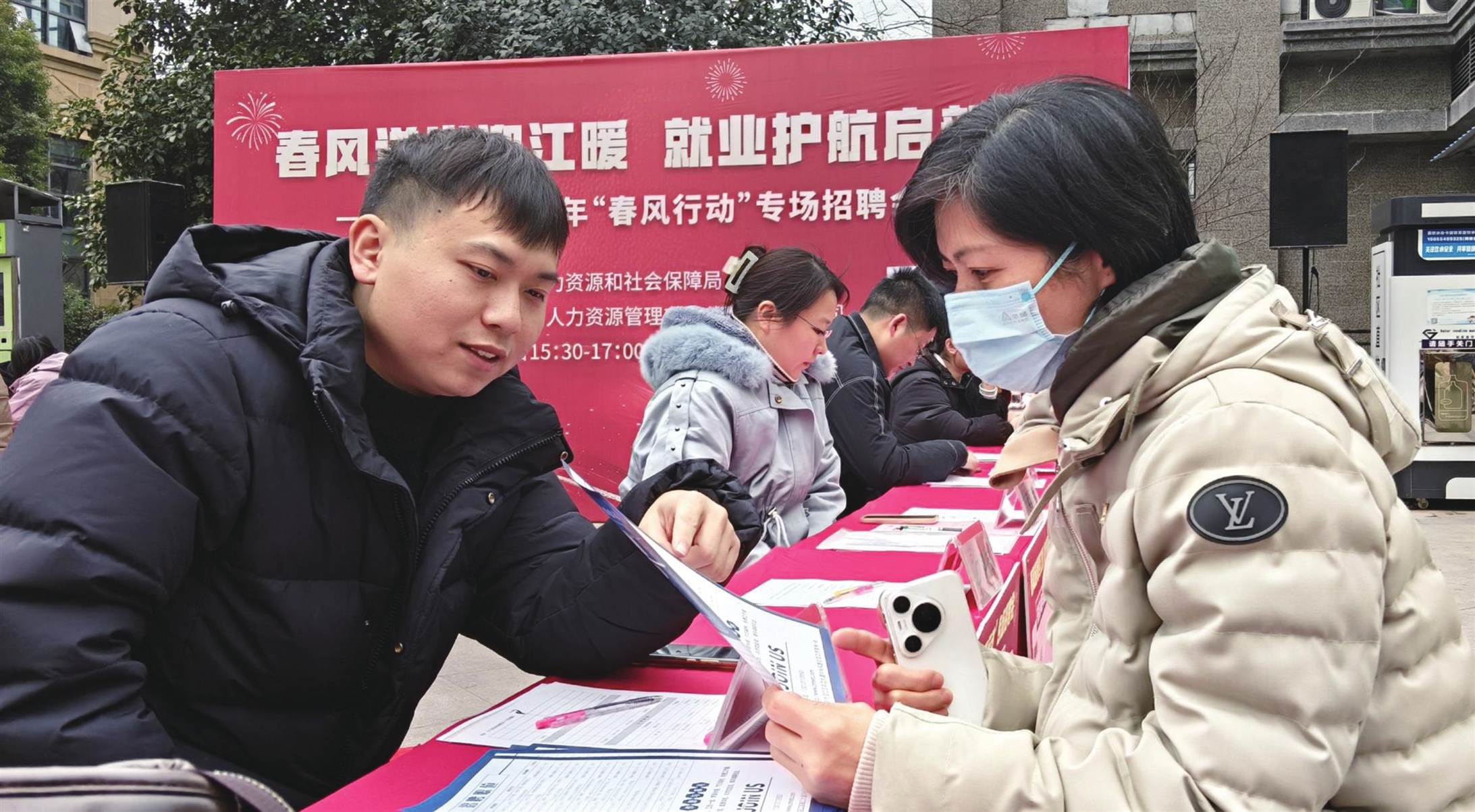 2月4日,求职者在迎江区2026年“春风行动”专场招聘会上与企业招聘人员交流岗位信息。本次招聘会由迎江区人力资源和社会保障局主办,吸引20家优质企业参与,提供新能源、信息技术、食品制造等领域800余个岗位,现场达成就业意向230余人次。活动精准对接企业用工与群众求职需求,是区域落实稳就业、保民生的重要举措。(全媒体记者 徐火炬 通讯员 程凯 摄)