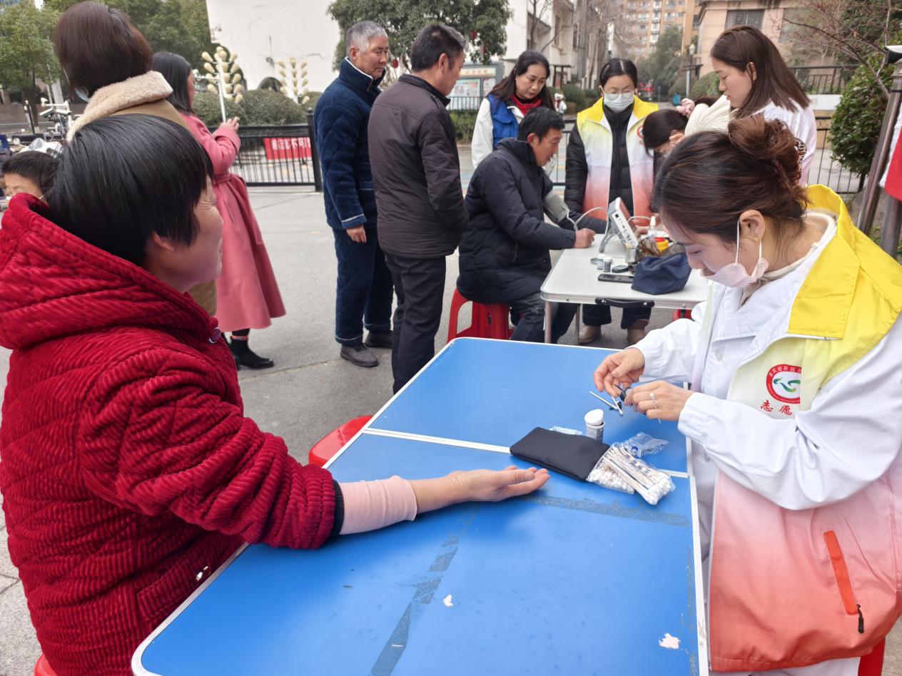 活动当天,颐徽苑小区广场暖意融融。义诊团队早早搭建起服务台,为居民提供血压测量、血糖检测、健康咨询、慢性病管理指导等服务。闻讯而来的居民们早早聚集,既有步履蹒跚的老年人,也有带着孩子的家长,大家脸上满是期待,现场秩序井然又暖意十足。针对冬季常见病、多发病以及中老年健康问题,工作人员耐心解答居民疑问,并结合个人身体状况提供个性化健康建议,有效解决了部分居民,特别是老年人“看病远、咨询难”的实际问题。