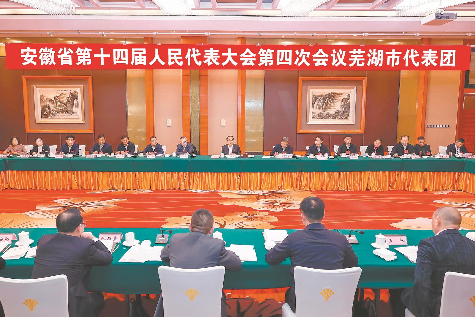 审议现场气氛热烈,代表们结合工作实际踊跃发言。在认真听取大家发言后,唐良智指出,“十四五”时期,在以习近平同志为核心的党中央坚强领导下,省委带领全省人民奋力拼搏,经济社会发展顶压前行、向新向优。芜湖作为省域副中心城市,正以昂扬向上的姿态,朝着“打造全省第二座万亿之城”的目标奋勇前进,为全省发展挑大梁、作贡献的底气更足、能力更强。