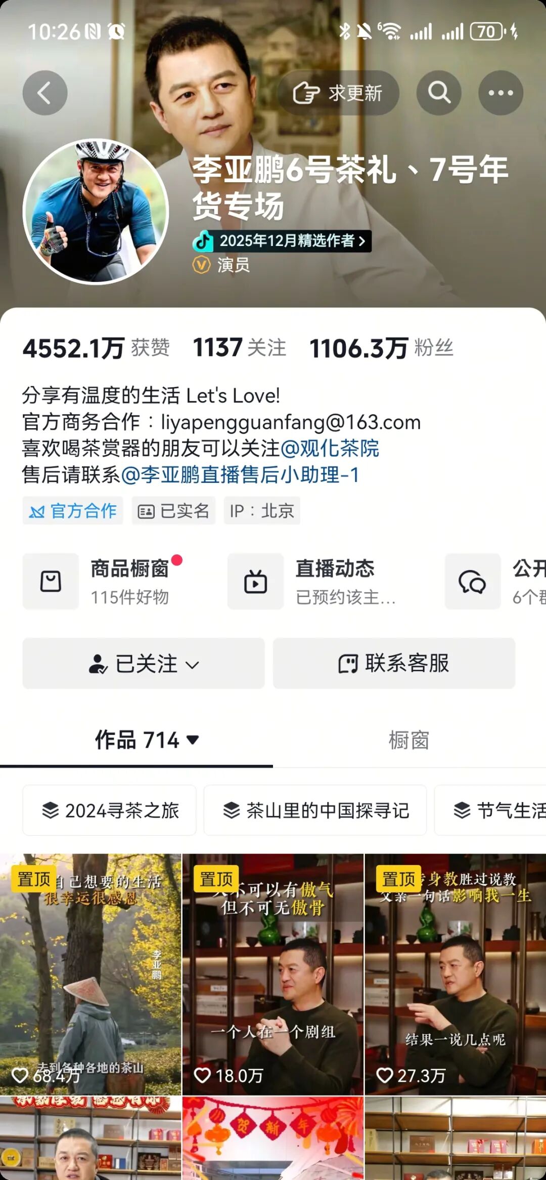 另外,李亚鹏的短视频账号已经从600万粉丝涨到超过1100万,一个月涨粉近500万。