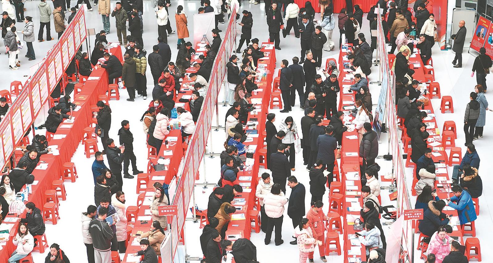 2月6日,由省总工会、阜阳市政府联合主办的2026年安徽省暨阜阳市工会就业服务示范招聘会在阜阳市科技文化中心举行。本次招聘会有160多家用人单位参与,提供就业岗位5000余个,涵盖智能制造、金融服务、教育培训等领域。通讯员 戴文学 摄