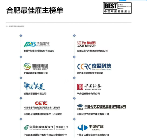 中国化学三化建连续六年荣获“合肥最佳雇主”称号