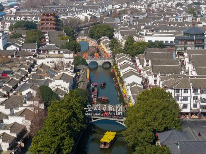 合肥市三河古镇景区张灯结彩喜迎新春。