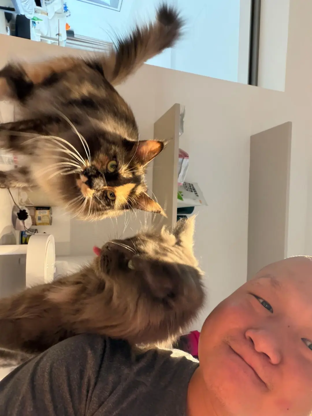 客户有其他需求的话,比如喂猫条、打扫卫生等等,一般都会提前和我沟通好,做完基础的,再做额外的部分。最后还会拍一个收拾好的情况,发给猫主人,让他们更加放心一些。”