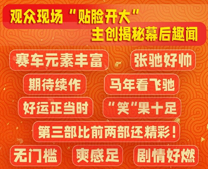 2月18日消息,由韩寒编剧并执导,沈腾领衔主演,尹正、黄景瑜、张本煜领衔主演,魏翔、沙溢主演,范丞丞、孙艺洲主演,段奕宏特邀主演,张新成、胡先煦、李治廷、白宇帆、周政杰、高华阳特别出演,贾冰、王安宇、陈永胜、冯绍峰友情出演的《飞驰人生3》豆瓣开分7.6分。