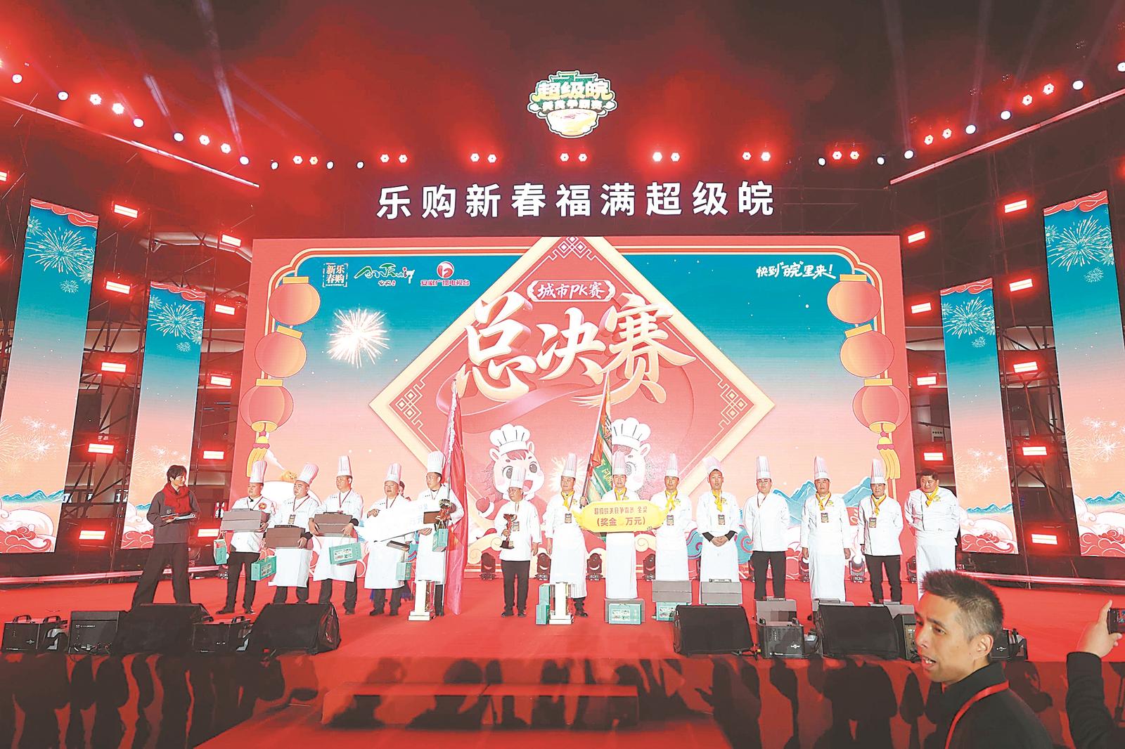 2月22日,正月初六,“乐购新春·福满超级皖”主题活动在合肥骆岗公园火热举行。作为活动的“核心引擎”,“超级皖”美食争霸赛总决赛上演巅峰对决,最终淮南队以微弱优势战胜阜阳队,捧起首届赛事桂冠。