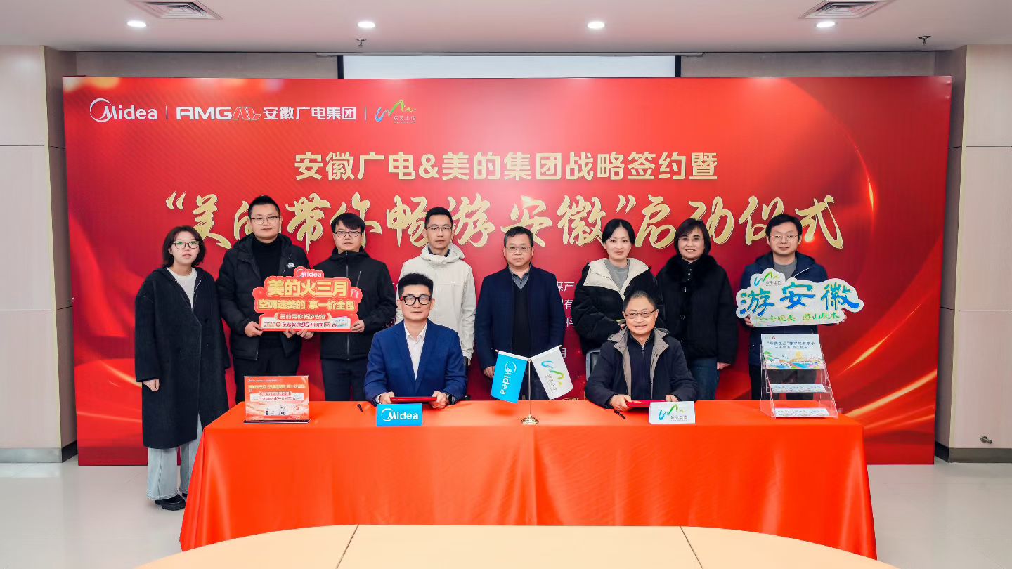 中安在线、中安新闻客户端讯 2月27日下午,安徽电影集团与美的集团合肥运营中心签订战略合作协议,推出买美的电器送“皖美生活”旅游年卡的重磅福利,合作启动“美的带你畅游安徽”惠民消费活动。活动期间,消费者购买美的家电产品,获得一张通往“皖美山水”的入场券,实现“一次消费、双重享受”,推动“家电换新”与“文旅畅游”双向赋能。