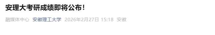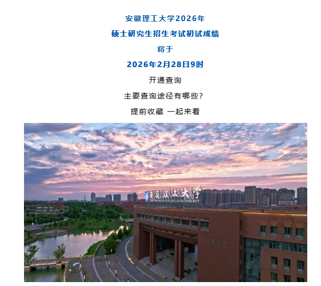 安徽理工大学2026年硕士研究生招生考试初试成绩查询将于2026年2月28日9时开通。