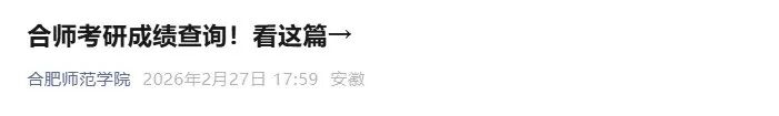 合肥师范学院2026年硕士研究生招生考试初试成绩查询将于2月28日9:00开通。