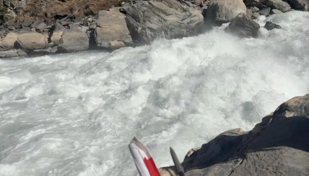 救援过程:女友登山杖被折断,向导跳入水中险遭不测