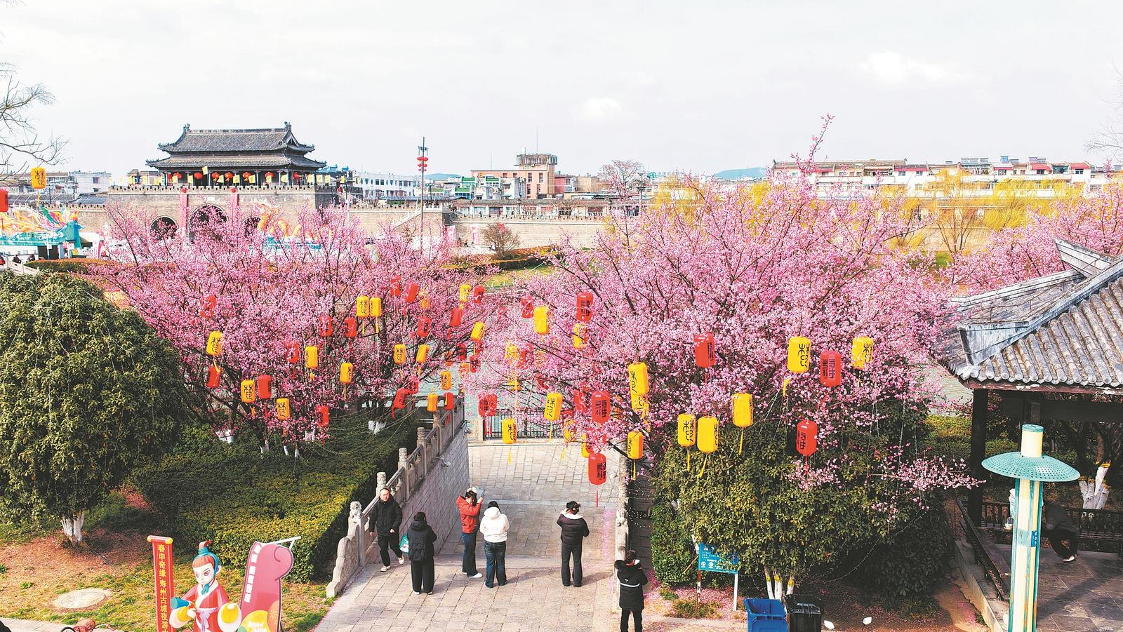 2月28日,寿县古城南门护城河畔,梅花进入最佳观赏期,吸引了众多游客前来赏花。通讯员 沈道银 倪旭昶 摄