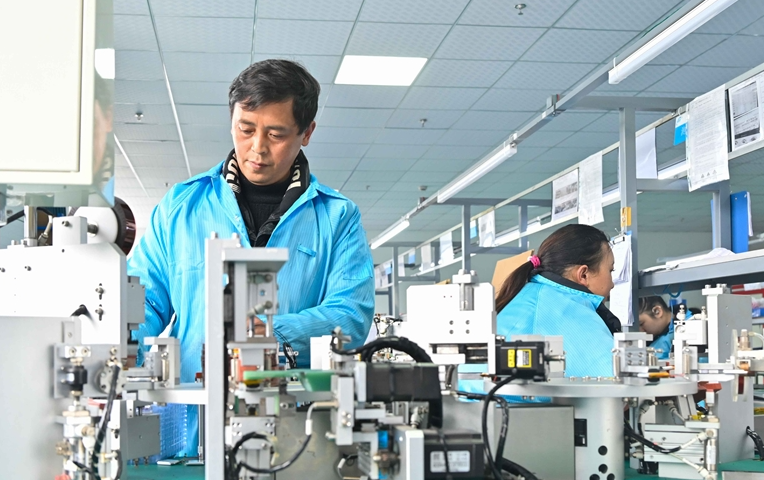 2月28日,在黄山华睿源科技有限公司生产车间内,工人正在忙生产赶订单。