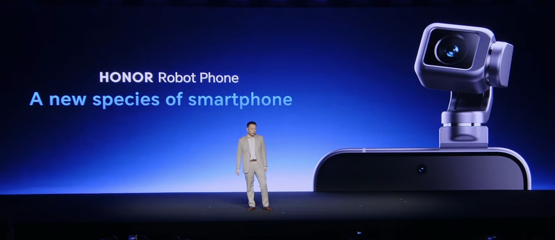 会上,由荣耀打造的机器人手机Robot Phone惊喜亮相。何同学现场上手Robot Phone,给机器人手机安上底座,解锁机器人手机新玩法。