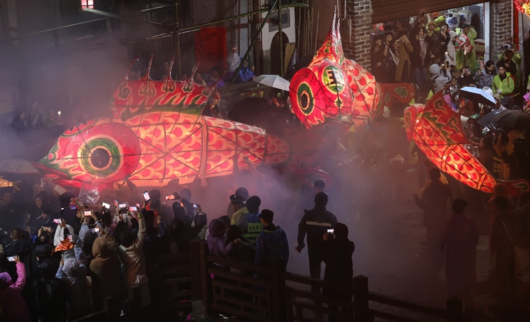 3月1日,歙县溪头镇汪满田村上演一年一度的“嬉鱼灯”。元宵节将至,村民在丰富多彩的特色民俗活动中喜迎佳节。