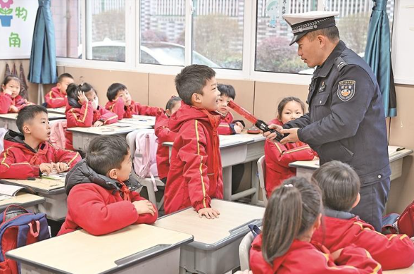 3月2日,芜湖市各中小学校迎来春季学期开学。当天,市公安局交管支队弋江大队民警走进延安路小学,开展“开学第一课——交通法制安全课宣传”活动,为广大师生普及交通安全知识 。记者 陈洁 摄