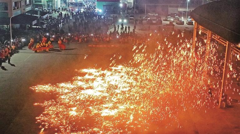 昨日,“2026年汤沟新春市集”在鸠江区汤沟镇热闹开幕。现场市民游客络绎不绝。打铁花、舞狮、庐剧轮番上演,热闹非凡。