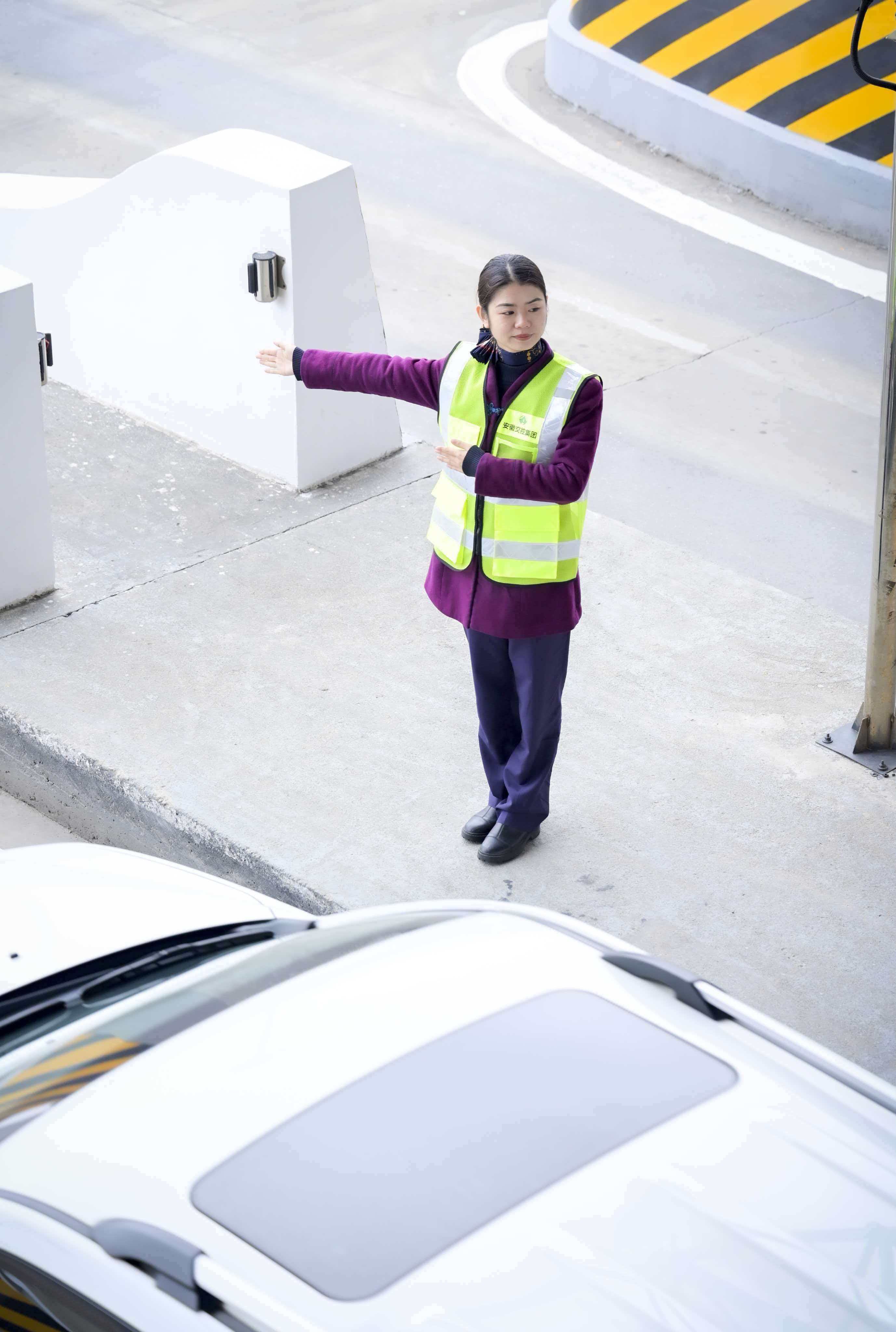 中安在线、中安新闻客户端讯 2月15日,正月初六,返程车流如潮水般涌向安庆收费站。收费广场上,车辆排起长龙,喇叭声此起彼伏。一个身着反光背心的年轻身影穿梭在车流中,手势干脆利落,脚步一刻不停。她时而俯身与司机沟通,时而通过对讲机协调增开车道,额头上细密的汗珠在寒风中凝结成霜。