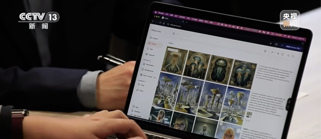 这些精美的图片,是上海一家文化公司利用人工智能大模型生成的。他们通过输入多组包含艺术风格、主体元素、材质细节等提示词,生成了这些图片,并发布在互联网平台上。