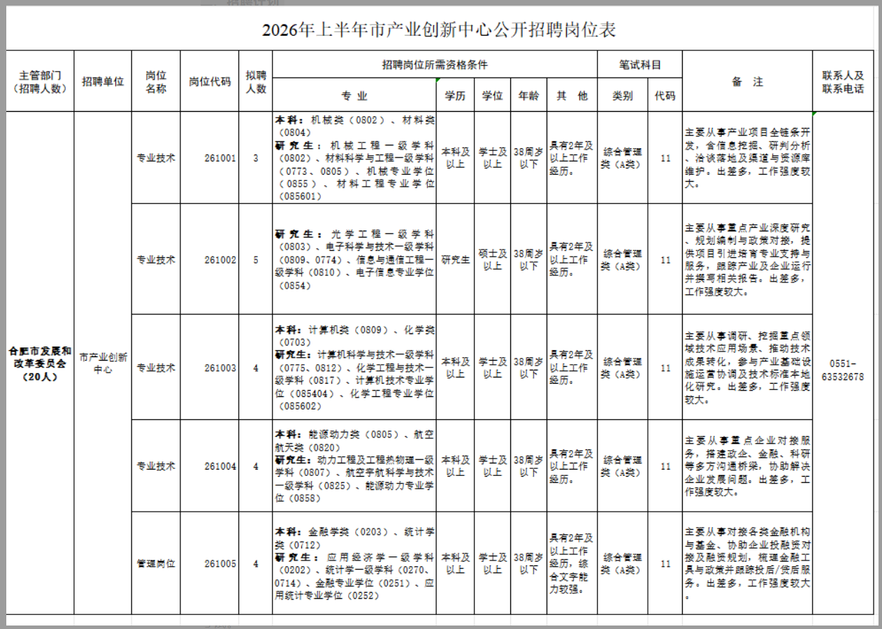 根据《事业单位人事管理条例》、《安徽省事业单位公开招聘人员暂行办法》等有关规定,现就2026年度上半年合肥市发展和改革委员会公开招聘事业单位工作人员有关事项公告如下(节选):
