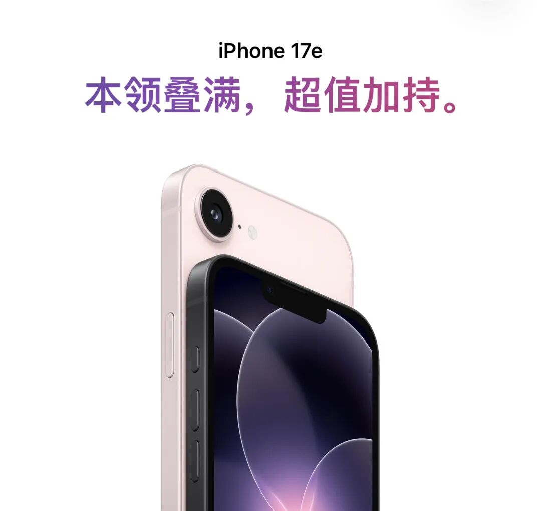 定价方面,iPhone 17e彻底砍掉128GB版本,起步存储直接翻倍至256GB,该版本官方起售价4499元,512GB版本售价6499元,更具吸引力的是,该机符合国家智能终端消费补贴政策,256GB版本可享约500元补贴,国补后到手价仅3999元,叠加以旧换新优惠后,实际入手价可低至3299元。