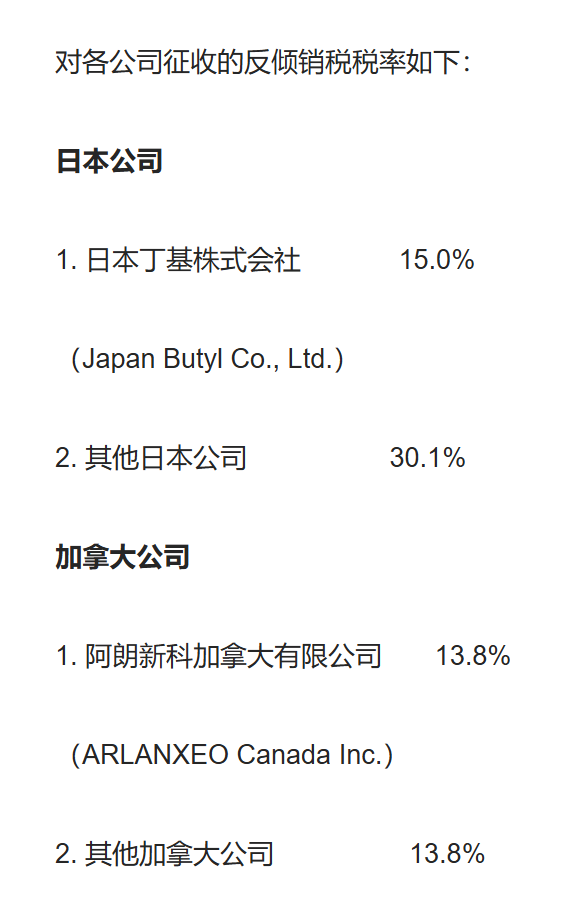 商务部公告,原产于日本和加拿大的进口卤化丁基橡胶存在倾销,国内卤化丁基橡胶产业受到实质损害,而且倾销与实质损害之间存在因果关系。自2026年3月14日起,对原产于日本和加拿大的进口卤化丁基橡胶征收反倾销税。