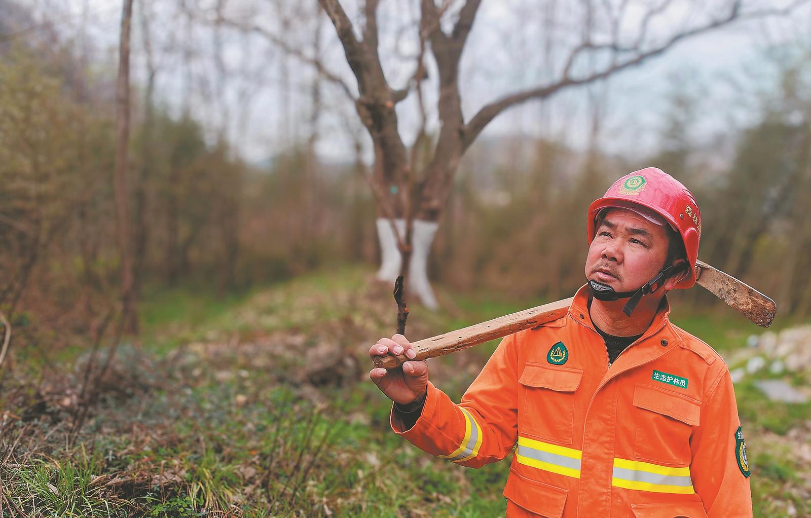 3月13日,生态护林员陈显忠像往常一样在山林里进行防火巡查。