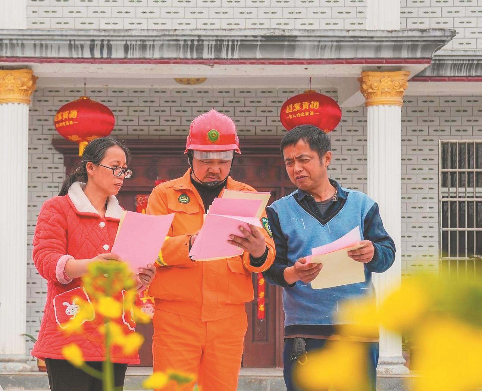 3月11日,生态护林员高正同走进金寨县梅山镇徐冲村,宣传防火知识。