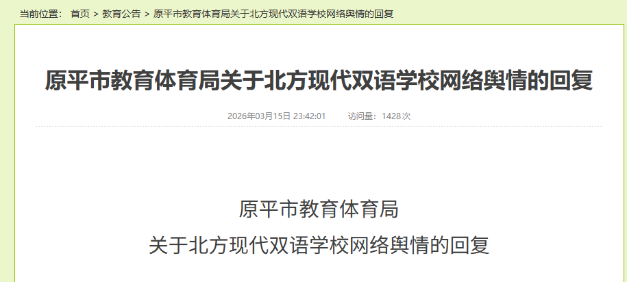 3月15日,事件相关方之一的原平市教育体育局对此作出官方回应:
