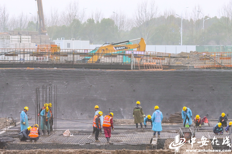 中安在线、中安新闻客户端讯 春日的合肥滨湖,一场春雨过后,正是施工黄金期。在嘉陵江路与昌都路交口西南角,中铁四局承建的合肥市滨湖高中(暂定名)项目现场桩机轰鸣,塔吊运转,近220名建设者正抢抓春季施工时节,全力推进项目建设。